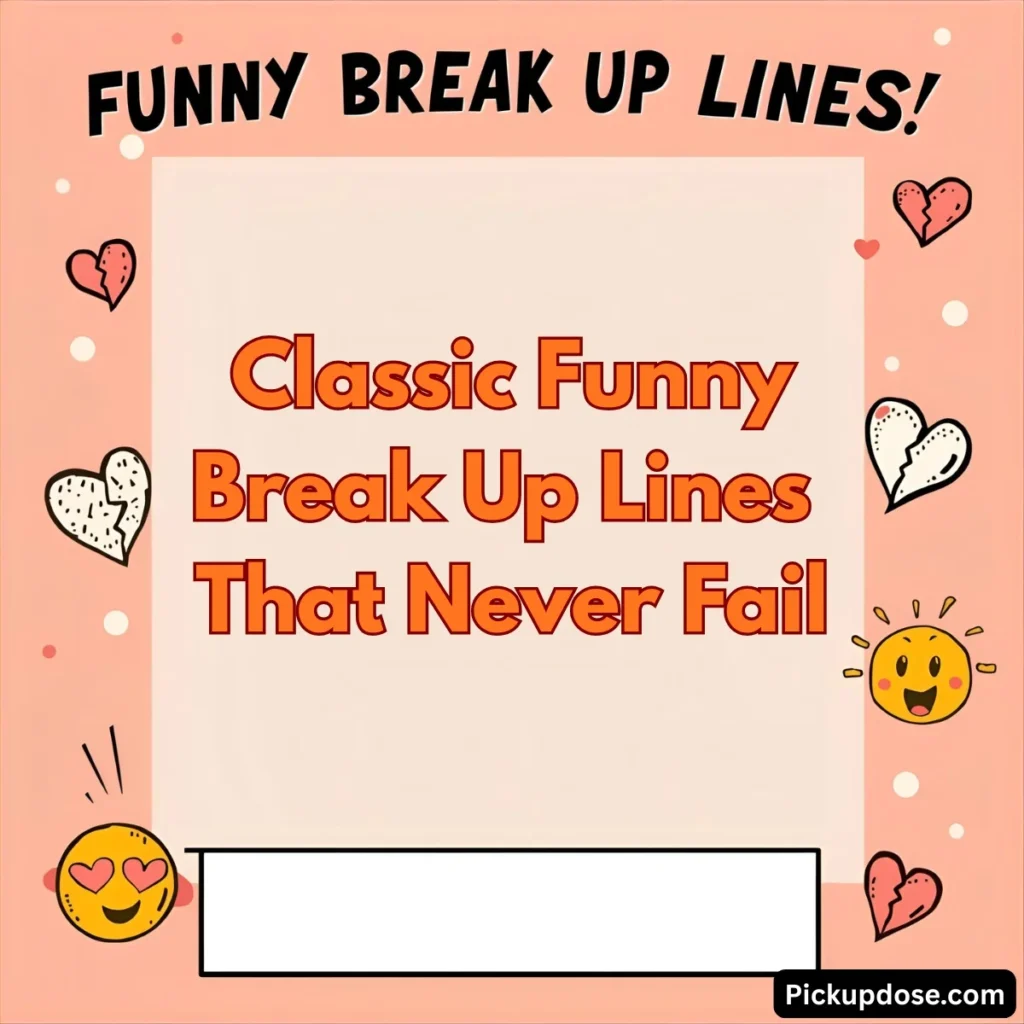 When chosen carefully and delivered with respect, humor can be the sugar that helps the medicine go down. ๐ญ๐ These witty one-liners and clever quips aren’t about making light of someone’s feelings, but about acknowledging that sometimes the best way to handle life’s uncomfortable moments is with a smile rather than a sob. ๐โก๏ธ๐ญ In this comprehensive guide, we’ve gathered the most creative, laugh-inducing funny break up lines from across the internet to help you navigate these tricky conversations with grace, humor, and just the right amount of sass. ๐โโ๏ธ๐
